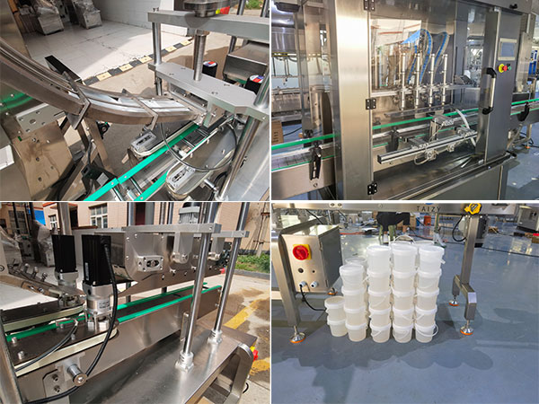 1L桶全自動(dòng)灌裝生產(chǎn)線的工作模式,主要依賴于PLC可編程軟件設(shè)定,操作人員需要提前將所需灌裝的參數(shù)規(guī)格、下料速度、重量多少、壓蓋力度等內(nèi)容設(shè)定在顯示屏幕當(dāng)中,并將灌裝的醬料備至在料箱內(nèi),啟動(dòng)顆粒醬灌裝設(shè)備,攪拌系統(tǒng)將會(huì)按照設(shè)定的規(guī)格進(jìn)入投產(chǎn)模式,攪拌系統(tǒng)內(nèi)部的螺旋攪拌配置,會(huì)持續(xù)不斷的對(duì)其進(jìn)行正反雙向攪拌,防止顆粒物料的沉淀,保持醬料的均勻性,軟件輸出將會(huì)按照程序設(shè)定,對(duì)容器進(jìn)行自動(dòng)進(jìn)瓶、自動(dòng)灌裝、自動(dòng)出瓶等操作,1L桶全自動(dòng)灌裝生產(chǎn)線的內(nèi)部設(shè)定了活塞式定量配置,它能夠精準(zhǔn)、快速地將顆粒醬料以均勻輸出模式送入容器內(nèi),隨后,顆粒醬灌裝設(shè)備則會(huì)進(jìn)入上蓋、壓蓋的后續(xù)操作。