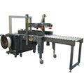 全自動封箱打包生產(chǎn)流水線主要操作流程:已裝好產(chǎn)品折好上蓋的產(chǎn)品箱從左邊的滾筒進入此流水線,進入第1臺包裝機械:全自動一字型封箱機(進行一字型封箱)—→進入第二臺包裝..