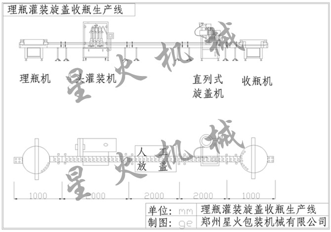 >> 4頭理瓶-灌裝-人工放蓋直旋-收瓶生產(chǎn)線