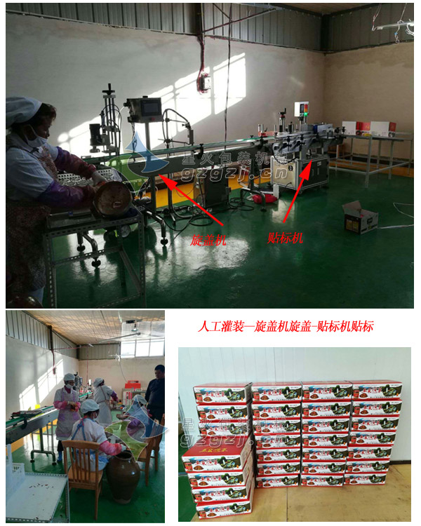 賓川匯民是一家專業(yè)生產(chǎn)韭菜醬腌菜的企業(yè),為了提高產(chǎn)量,經(jīng)過了解選購了我們的真空旋蓋機和自動貼標機,由人工灌裝腌菜后,交由旋蓋機進行真空旋蓋再貼標,提高了一半的生產(chǎn)效率并節(jié)省了人力開支,旋蓋機、貼標機使用一段時間之后,該企業(yè)負責任了解全自動化生產(chǎn)的優(yōu)勢;打電話又咨詢訂購了醬料全自動灌裝機,組成了全自動韭菜醬腌菜包裝生產(chǎn)線;可以自動完成整個包裝流程,既能節(jié)省了企業(yè)的人工成本,又可以減少食品在包裝過程中遭受污染的可能,提高食品包裝的安全性和衛(wèi)生性