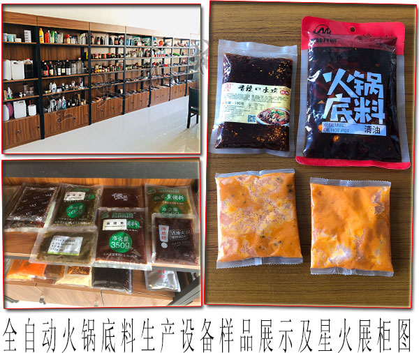 全自動(dòng)火鍋底料生產(chǎn)設(shè)備樣品展示及星火展柜圖