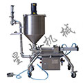 雙頭配線臥式攪拌醬料灌裝機(jī)主要是針對(duì)粘稠并帶有顆粒且濃度較大的醬狀物料..
