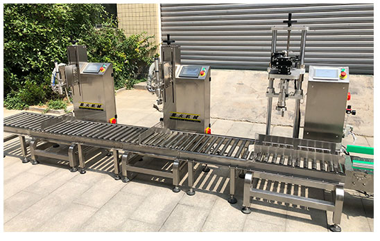 自動(dòng)稱重式灌裝旋蓋生產(chǎn)線/桶裝稱重灌裝線的工作流程:自動(dòng)稱重式灌裝旋蓋生產(chǎn)線在高過大氣壓強(qiáng)的情形下開展罐裝,也可分成二種:一種是貯液主缸的壓力與瓶內(nèi)的工作壓力同樣,根據(jù)液態(tài)自身的凈重引入瓶內(nèi),稱之為隔熱保溫全過程罐裝;另一種是貯液主缸的工作壓力高過瓶內(nèi)的工作壓力,液態(tài)根據(jù)壓力差引入瓶內(nèi),這類辦法多用以迅速生產(chǎn)流水線。
