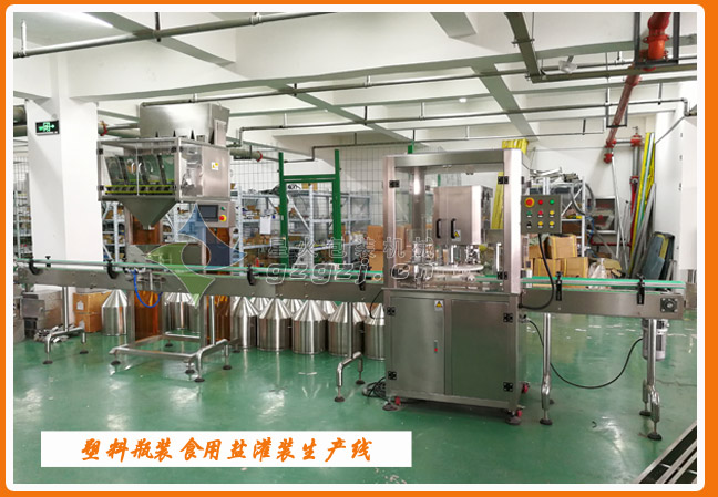 瓶裝食用鹽包裝生產(chǎn)線車間展示:
